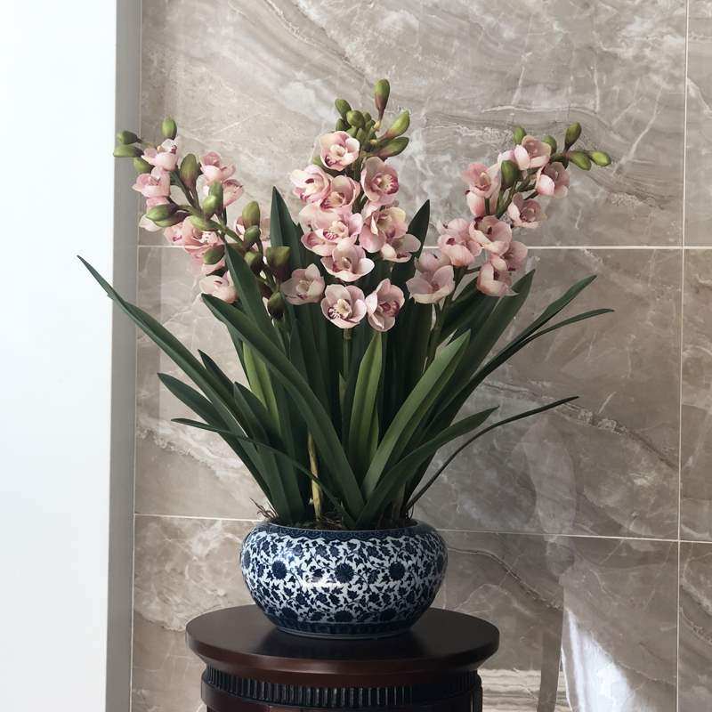 高档大蕙兰花仿真花艺客厅摆设摆件装饰蝴蝶兰玄关角几美式新中式热门设计联盟服务商