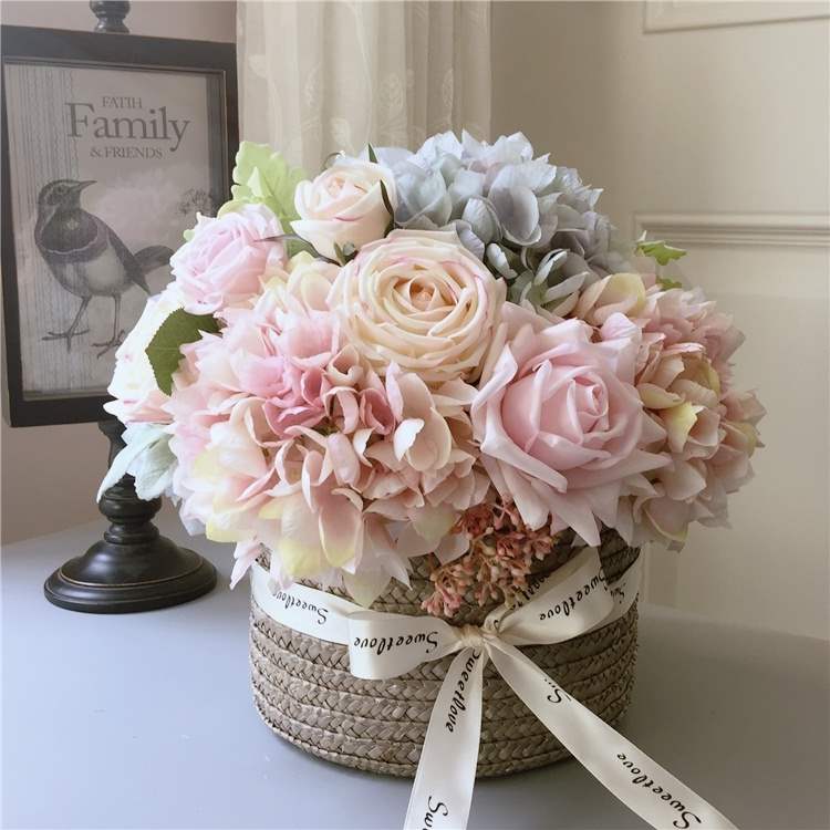 正品仿真花艺花篮装饰假花婚庆插花绣球玫瑰花束欧式美式家居客厅热门设计联盟服务商