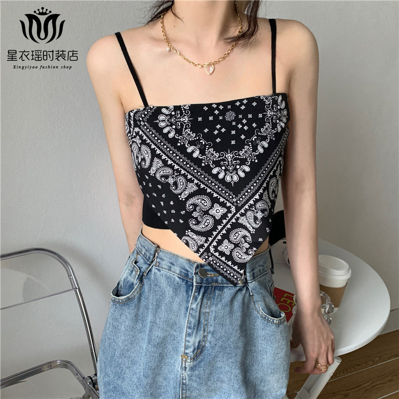 2021年夏季新款设计感小众印花无袖吊带背心女三角巾外穿抹胸上衣热门设计联盟服务商