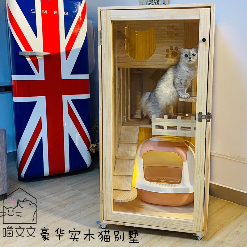 正品豪华实木猫别墅猫窝猫笼具猫房子猫舍猫柜猫展示柜三层两层大热门设计联盟服务商
