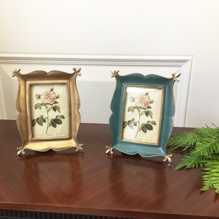 复古做旧6寸树脂相框摆台欧式美式蓝色艺术相架画框婚纱照摆件热门设计联盟服务商
