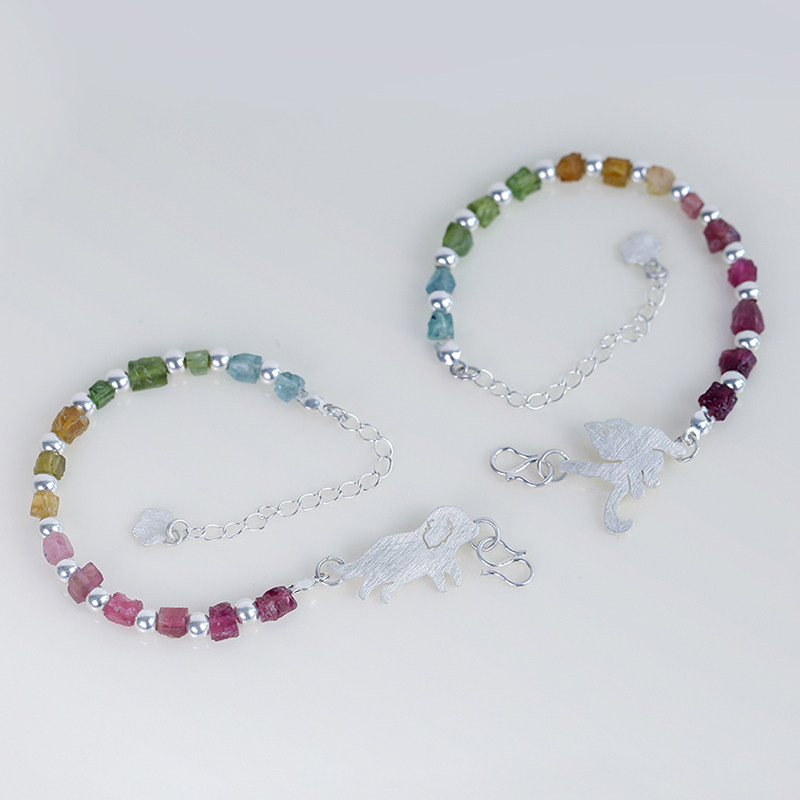 「雲見」守护添屎 猫狗原创设计宠物金毛碧玺原石925银延长链手链热门设计联盟服务商
